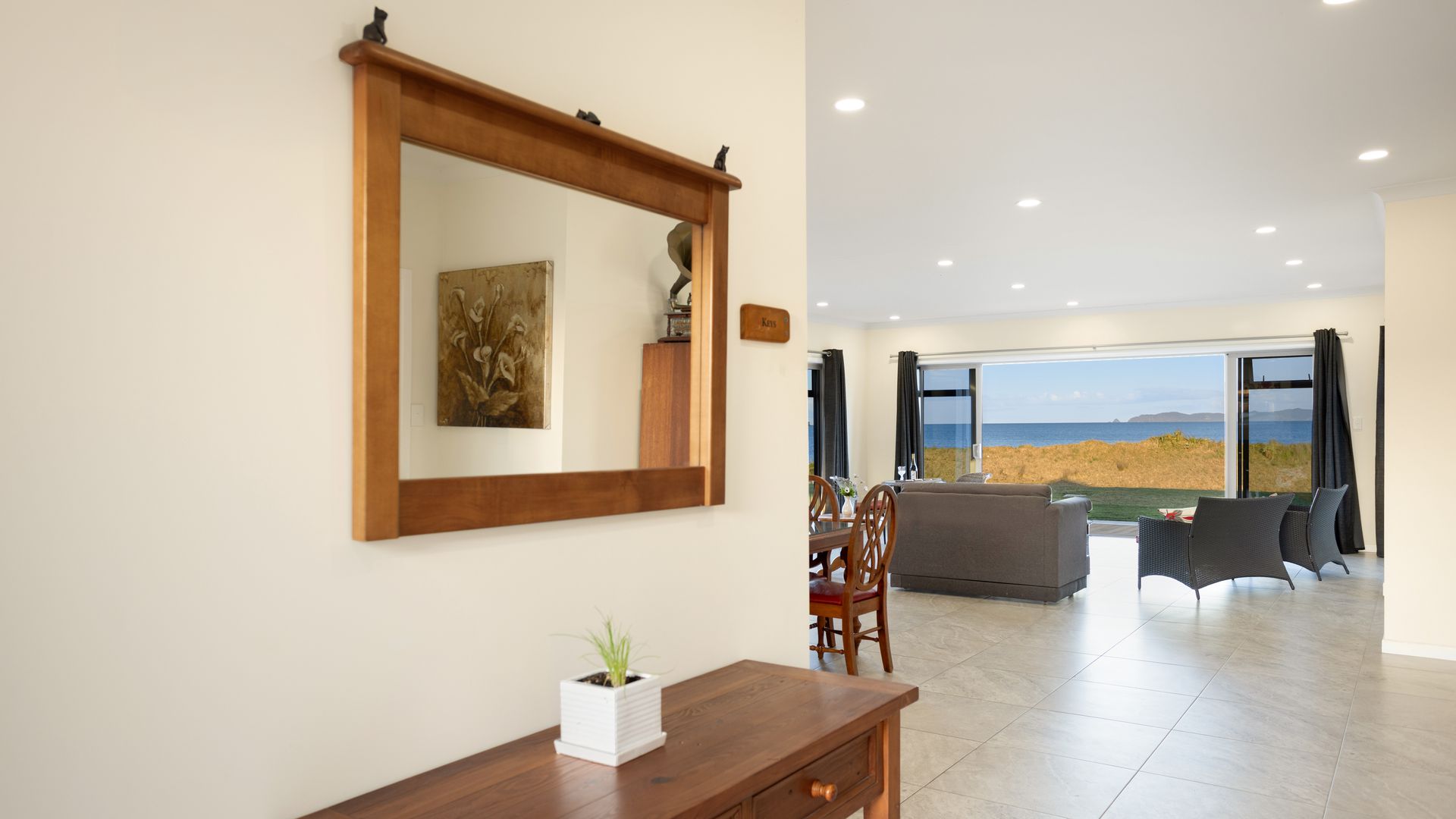 The position is the show-stopper. Elevated for outlook and peace of mind, yet flat, usable and remarkably private, it gives you room for gardens, games, future additions, possible subdivision or an additional dwelling. Step off the lawn and onto kilometres of sand for morning swims, evening walks, surf casting and effortless summer hosting.