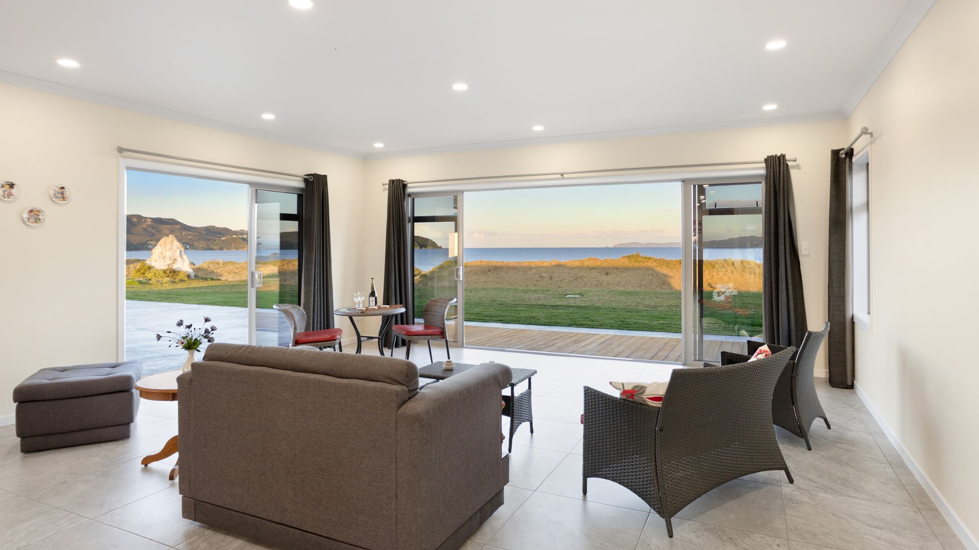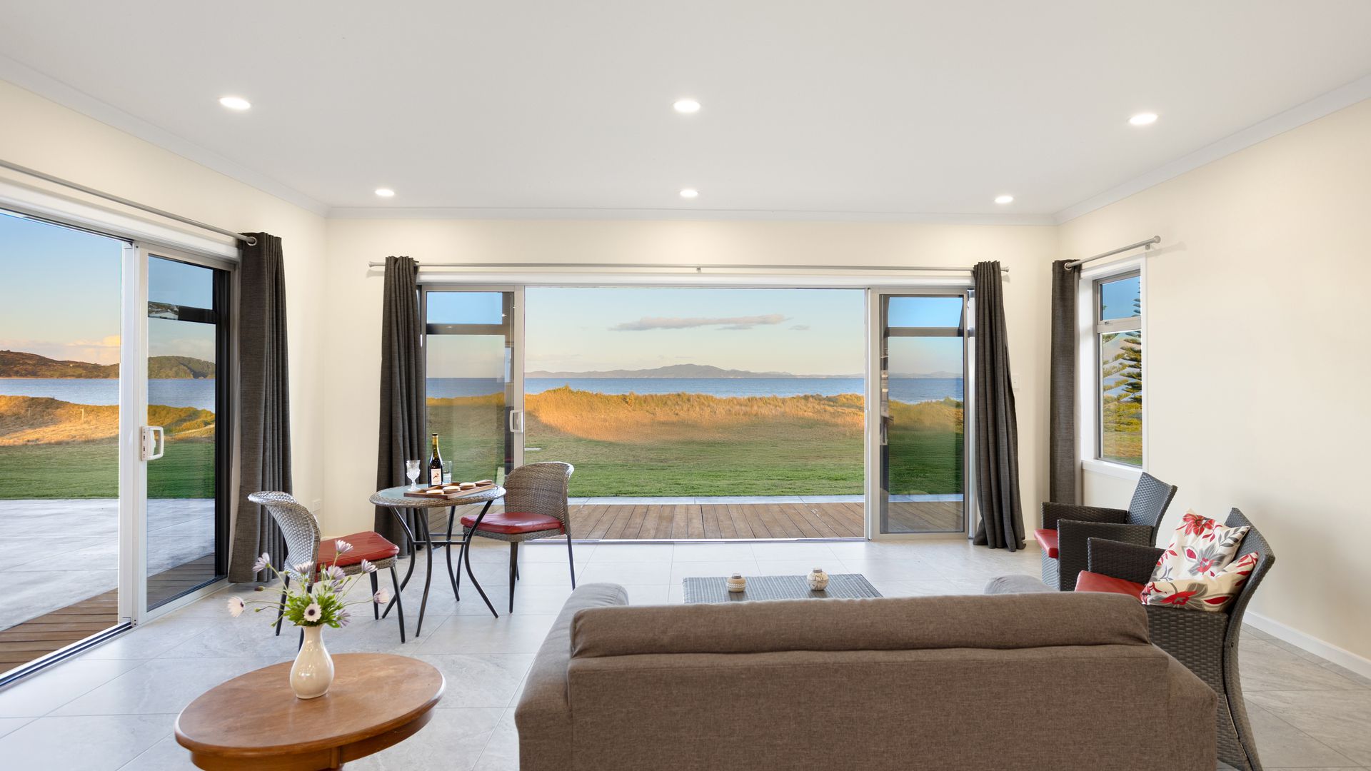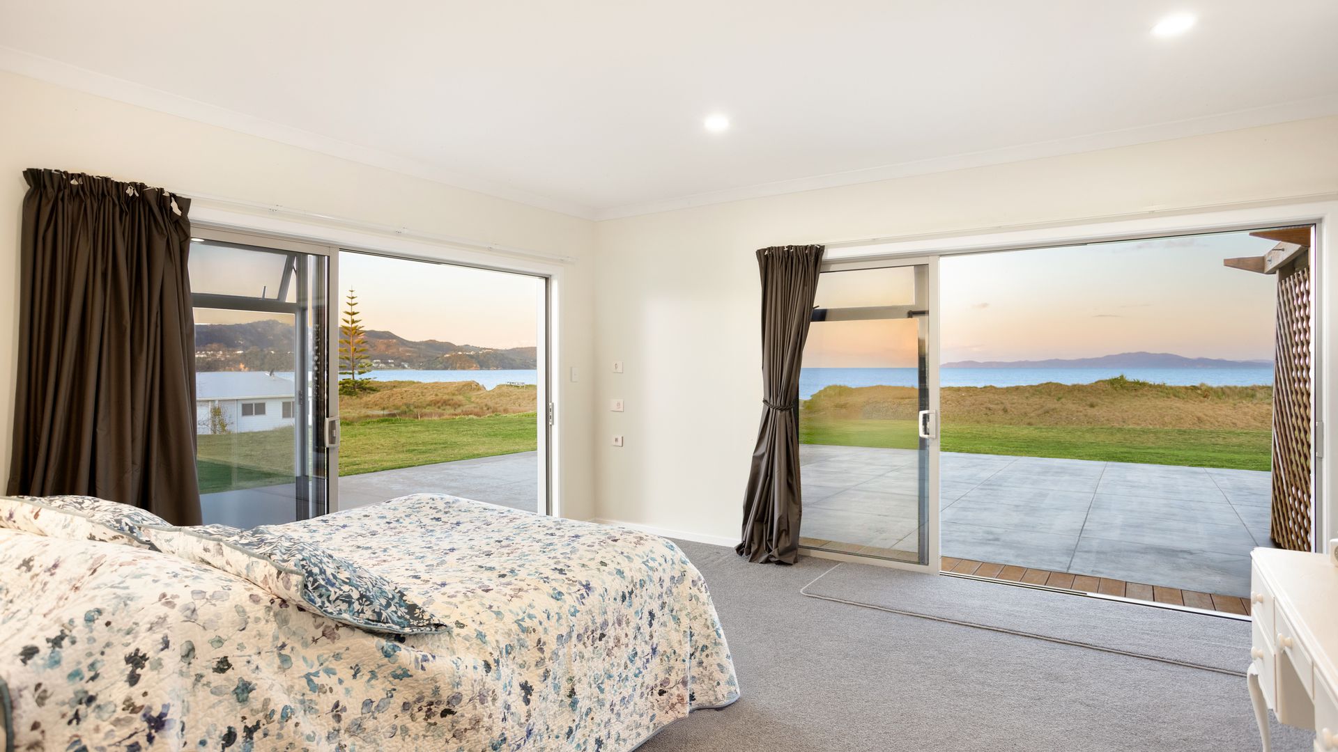 Adjacent to a reserve and set above the dunes with direct access to Tokerau Beach, this brick residence from 2017 occupies a rare 6,309sqm coastal holding on the coveted Karikari Peninsula. The scale is impressive, with 388sqm of solid construction, broad patios, and sliders that frame uninterrupted sea and headland views.